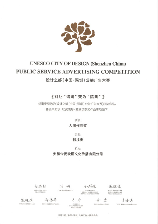 設計之都(中國·深圳)公益廣告大賽-《別讓“餡餅”變?yōu)椤跋葳濉薄?/p>